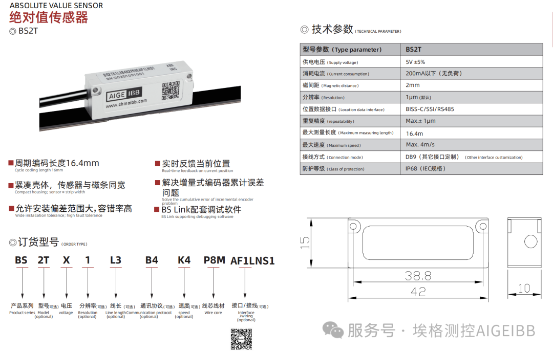 小身材更有大能量。 这款传感器以仅42*15*10mm的微型尺寸,实现了16.4m的最大测量长度,在空间狭小的设备场景中轻松“安家”,无需为适配传感器而重构机械结构。 性能上更是硬核在线:IP68级防水防尘等级,无惧车间油污、冷却液冲刷与粉尘侵袭,在恶劣工况下仍能稳定运行;支持BISS-C/SSI/RS485多通信协议,可无缝适配不同品牌的PLC与控制系统,兼容性覆盖绝大多数工业场景。